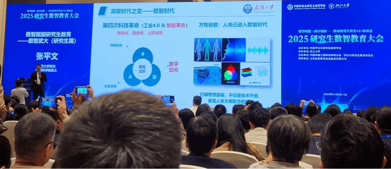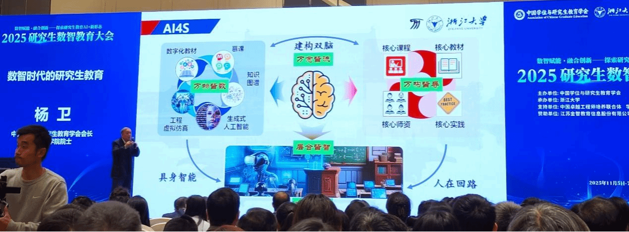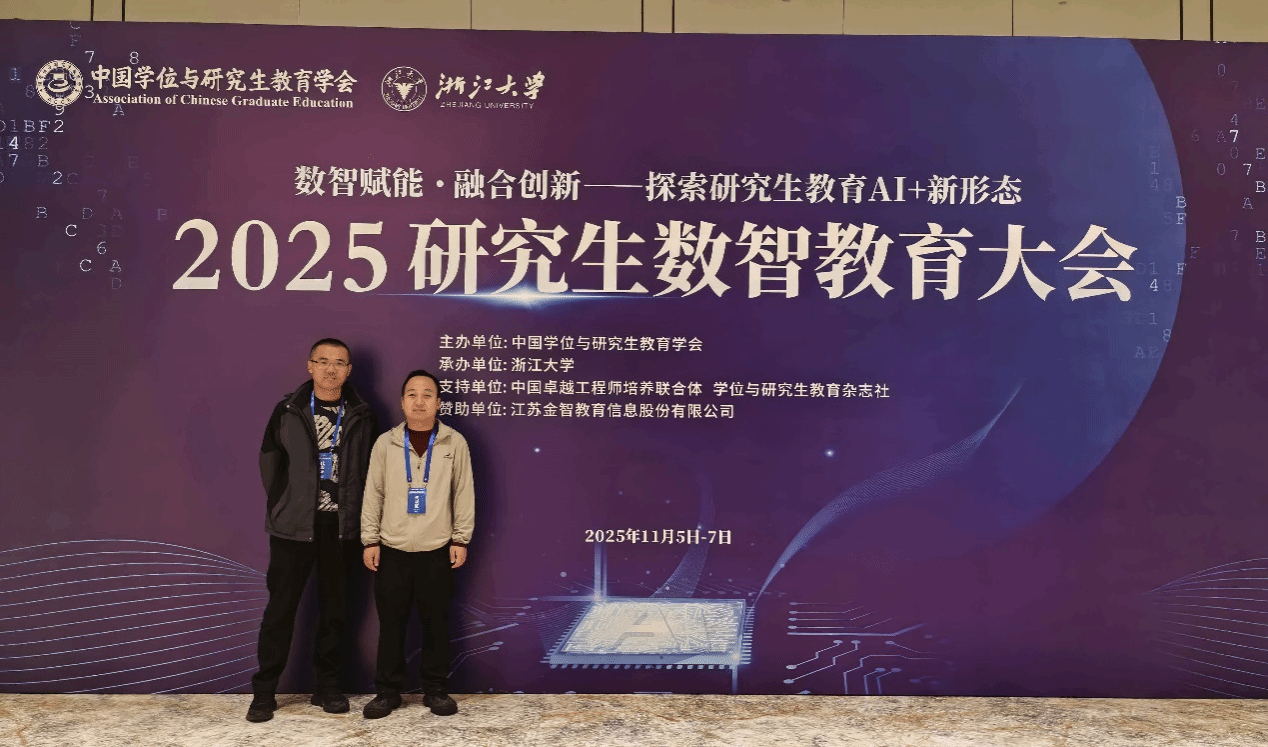 2025年11月6日至7日,以“数智赋能·融合创新——探索研究生教育AI+新形态”为主题的2025年研究生数智教育大会在杭州成功召开。会议由中国学位与研究生教育学会主办,浙江大学承办,吸引了全国约360所高校的千余名专家学者参与,共同探讨数智技术与研究生教育深度融合的路径与前景。公司英国365上市公司硕士研究生导师代表陈世喜博士与史庆超博士参会学习。