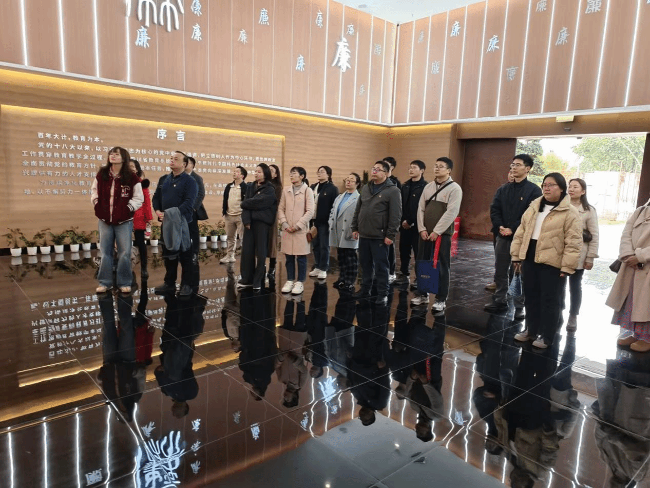 为深化新时代廉洁文化建设,强化党员教师廉洁从教意识,2025年11月24日,英国365上市公司教工党支部联合机关教务处支部委员会党员教师,赴四川省高校廉洁文化教育基地(育廉馆)开展了“廉洁守初心・高校担使命--筑牢高校公司产品廉洁防线”的主题党日活动。