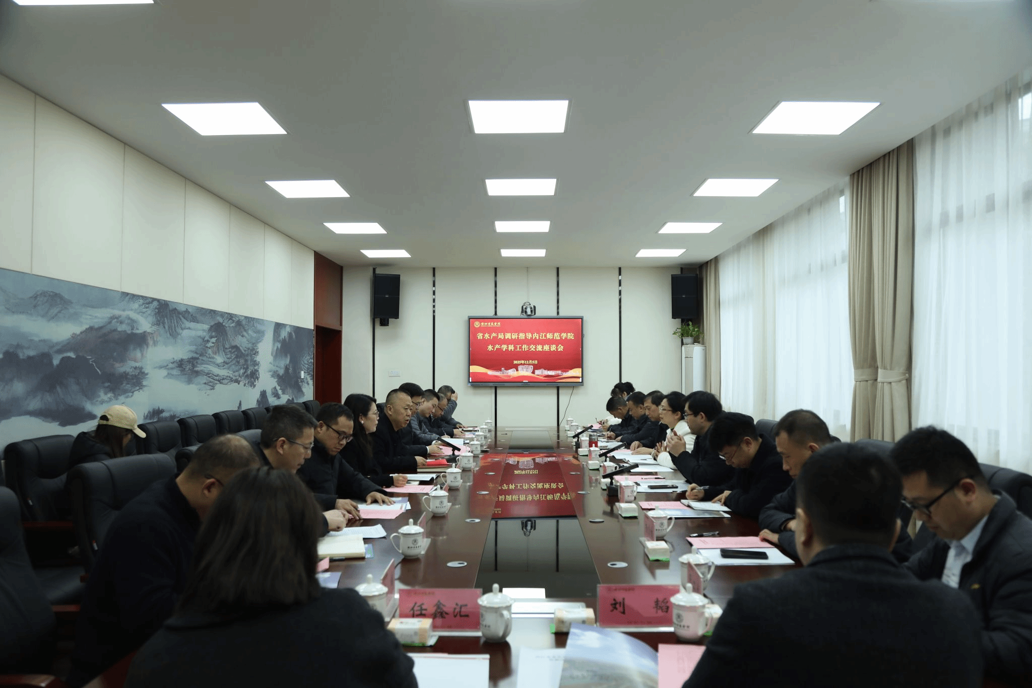 12月5日下午,四川省水产局党委书记、局长周晓琴率队赴校调研指导水产团队建设工作。公司党委书记黄永忠,党委副书记、董事长郭云东参加调研活动。