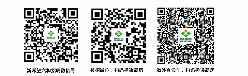 手机端 扫描二维码关注“新希望六和招聘”微信公众号——点击“加入我们”——选择“校园招聘”——选择“校招岗位”